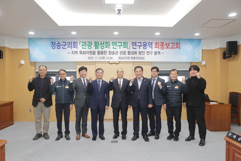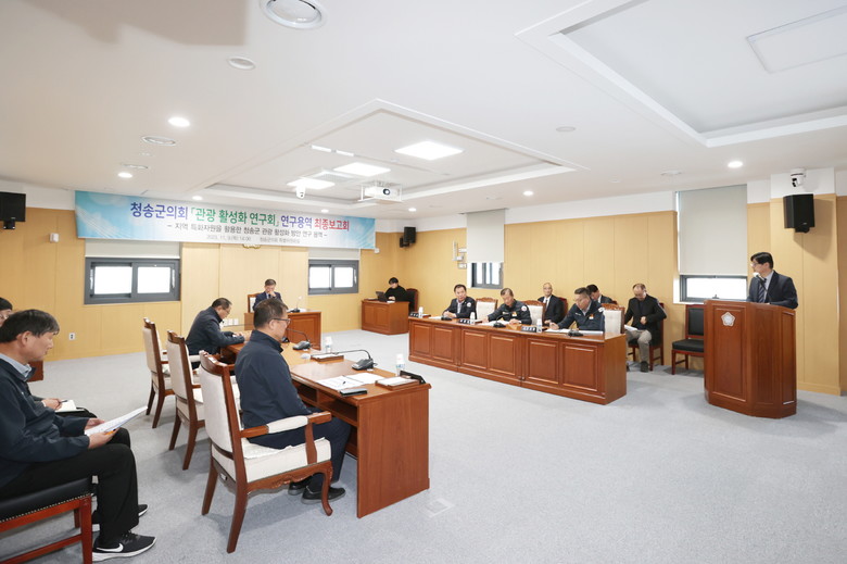 [청송군 세계타임즈=한윤석 기자] 청송군의회 의원연구단체 ‘청송 관광 활성화 연구회’의 연구용역 최종보고회가 지난 11월 9일 군의회에서 개최됐다.
