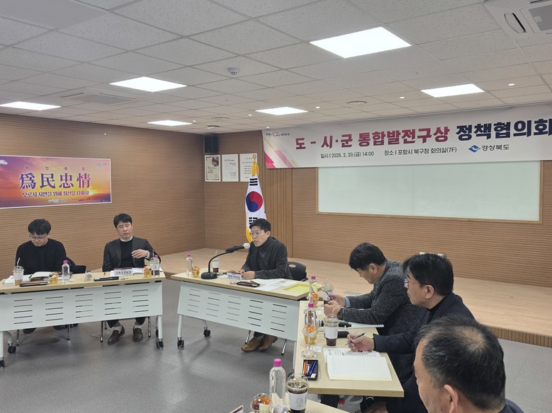 [경북 세계타임즈=한윤석 기자] 경상북도는 2월 20일, 포항시청에서 동부권(포항.경주.영덕.울진.울릉) 5개 시군 기획부서장, 담당자 등 70여 명과 함께 지역 미래발전 전략 마련을 위한「도-시군 통합발전구상 정책협의회」를 개최했다.