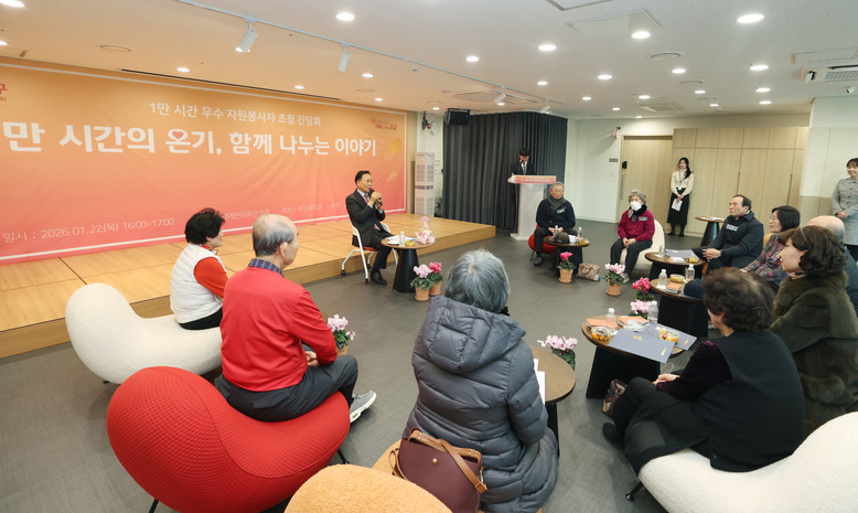 [강남구 세계타임즈=이장성 기자] 꿈이 모이는 도시, 미래를 그리는 강남구(구청장 조성명)가 1월 22일 강남구어린이회관에서 누적 1만 시간 이상 자원봉사를 실천한 우수 자원봉사자 10명을 초청해 간담회를 열었다.