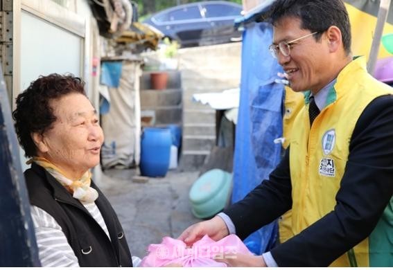 [세계타임즈 이채봉 기자]이순열(79) 할머니는 오늘도 어김없이 핑크색 보자기를 손에 쥐고 온 봉사단을 환한 웃음을 지으며 반겼다.