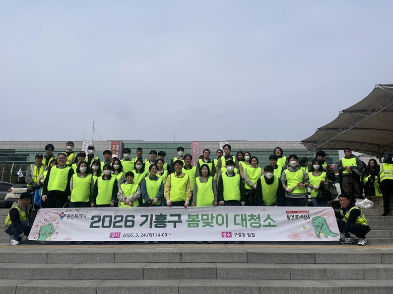 기흥구는 24일을 구청 공직자, 환경미화원 등 약 60명이 참여한 가운데 새봄맞이 대청소를 했다. 구는 이날을 ‘봄맞이 대청소의 날’로 정하고 기흥구청부터 상갈파출소 사거리, 기흥역사거리까지와 기흥구청부터 AK사거리, 기흥택시쉼터, 한성2차 사거리까지 등 2개 구간에서 생활쓰레기와 방치물 등 800㎏을 집중 수거했다. 구 관계자는 “매년 봄맞이 대청소 기간을 운영해 시민이 체감할 수 있는 쾌적한 도시환경을 만드는 데 힘쓰고 있다”며 “앞으로도 부서 간 협력과 시민 참여를 확대해 지속 가능한 청결행정을 추진하겠다”고 말했다.