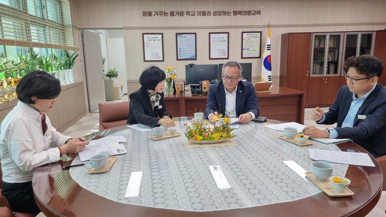 이날 정 의원은 권순희 의령교육지원장, 강정 교육지원과장, 이나연 행정지원과장과 함께 의령지역의 학생들을 위한 현안문제에 대해 간담회를 가졌다.
