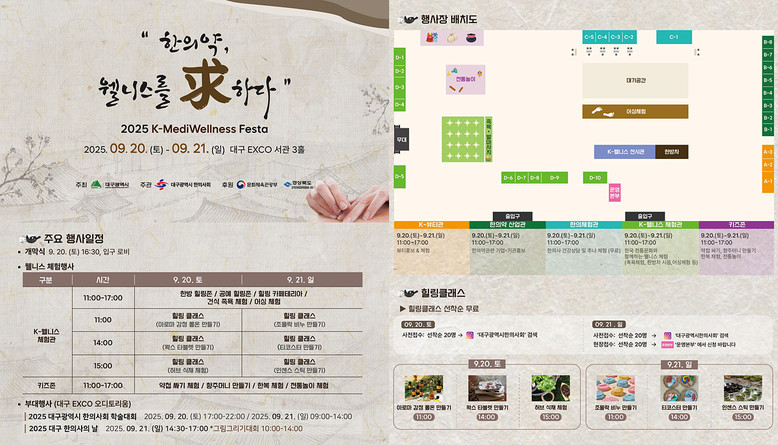 대구시와 대구시한의사회가 공동 주최·주관하고, 문화체육관광부와 경북도가 후원하는 이번 행사는 대구가 단순한 의료 관광지를 넘어 ‘MediWellness City 대구’로 도약하는 전환점이 될 것으로 기대된다.