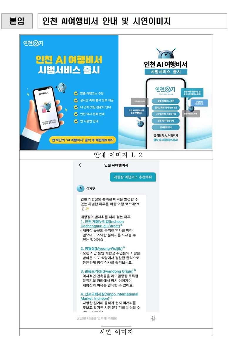 이번 시범 운영은 2026년 상반기 정식 서비스 제공에 앞서 이용자 의견을 수렴하고 품질을 고도화하기 위한 단계다. 인천시는 이용 패턴과 질문 내용을 분석해 초개인화 추천 알고리즘과 관광정보 큐레이션* 기능을 강화할 계획이다.