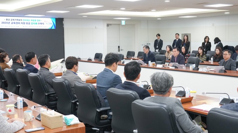 [충남 세계타임즈=이현진 기자] 충남교육청(교육감 김지철)은 19일(금), 도교육청 회의실에서 교육경비 지원으로 충남 교육발전에 이바지한 개인과 기업·민간단체에 감사패를 전달했다.