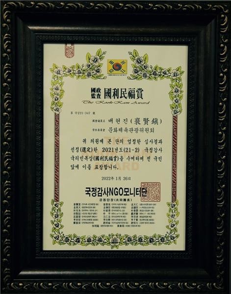 [세계타임즈 이채봉 기자]배현진 의원(국민의힘, 송파을)이 26일 국정감사 NGO 모니터단이 뽑은 국정감사 우수의원에 선정되어‘2021년 국리민복상’을 수상했다.