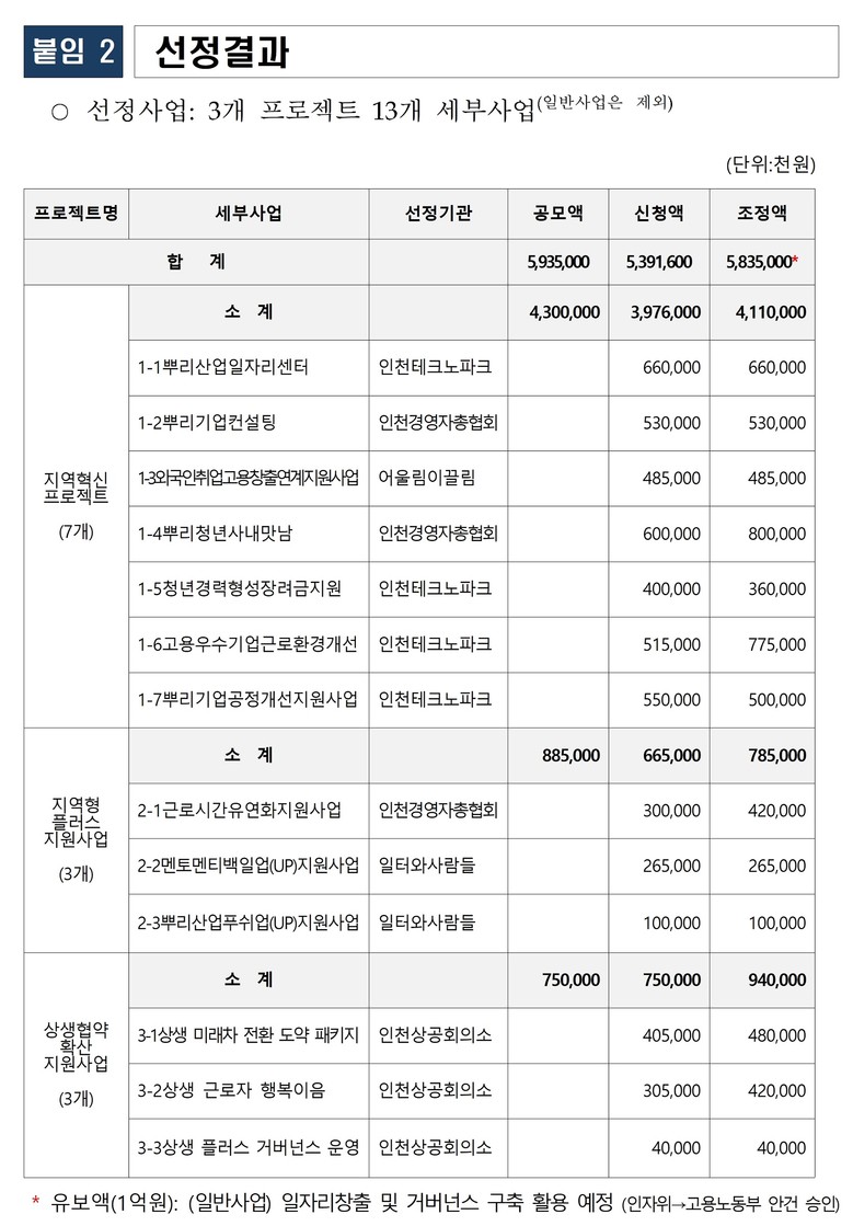 인천시는 뿌리산업과 자동차 부품제조업을 기반으로 한 ▲지역혁신 프로젝트 ▲지역형 플러스 일자리사업 ▲업종별 상생협약 확산 지원사업 등 총 3개 사업에 국비 47억 원과 시비 12억 원을 포함한 총 59억 원 규모의 재원을 투입한다.