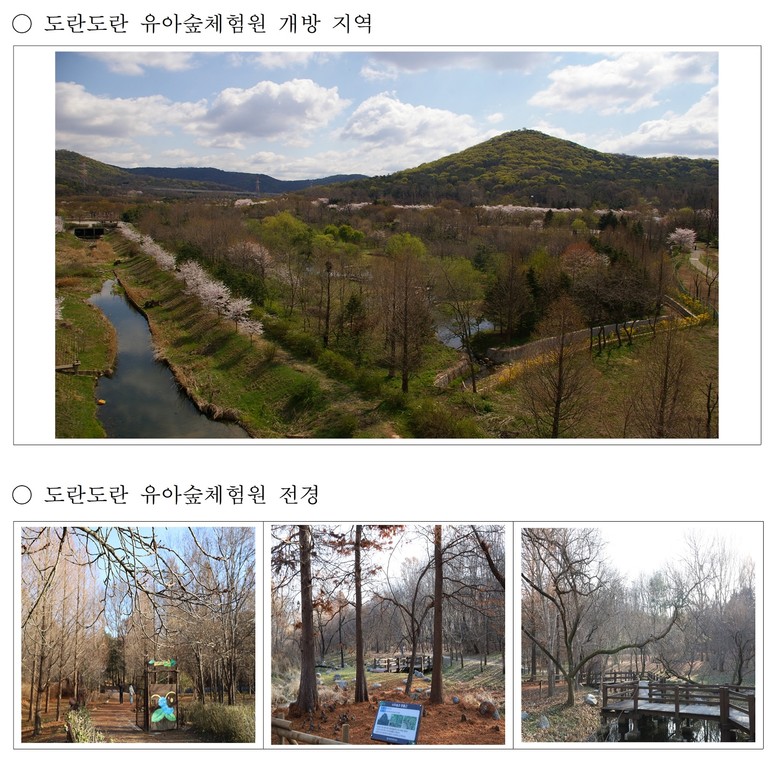 도란도란 유아숲체험원은 인천대공원 습지원 내 1998년 조성한 자연학습장을 2019년에 유아숲체험원으로 등록한 공간으로, 그동안 유아들을 위한 숲체험 프로그램 중심으로 운영해 왔다.