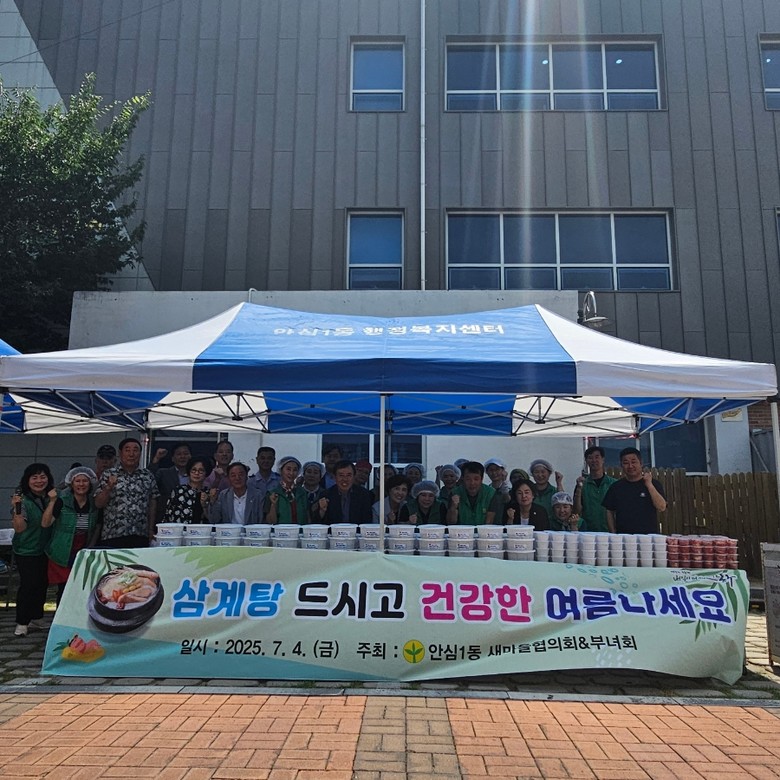 [동구 세계타임즈=한윤석 기자] 안심1동 새마을지도자협의회(회장 이인욱)·새마을부녀회(회장 심이순)는 지난 4일, 동 행정복지센터에서 ‘초복맞이 삼계탕 나눔 행사’를 개최했다.