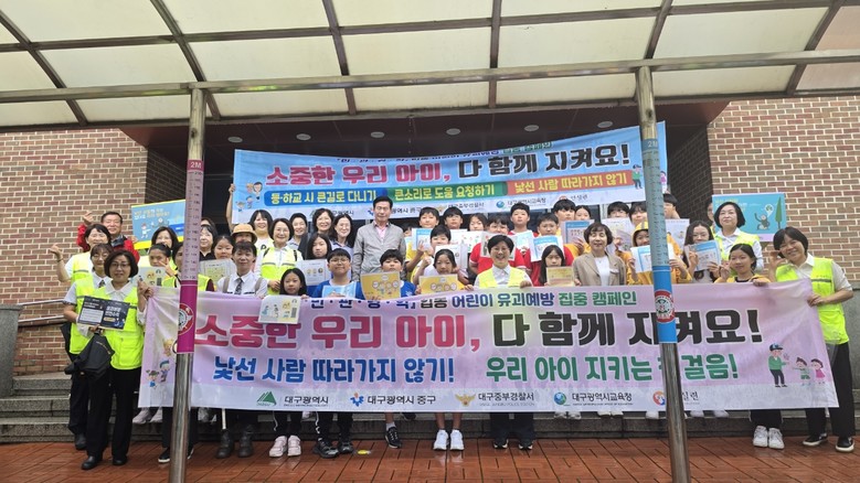 캠페인에는 대구시, 중구, 경대사대부초 교직원과 학생, 중부경찰서, 대구안전생활실천시민연합, 중구안전보안관 등 50여 명이 참석해 학생과 학부모들에게 유괴 예방 안전수칙을 적극 홍보했다.