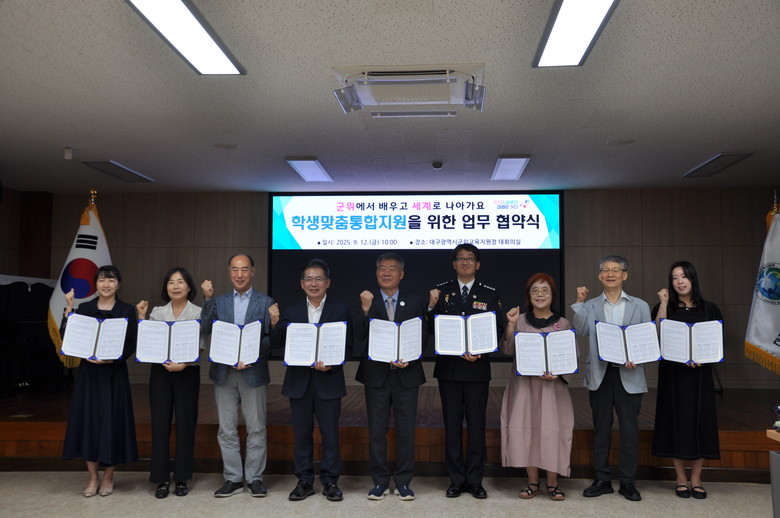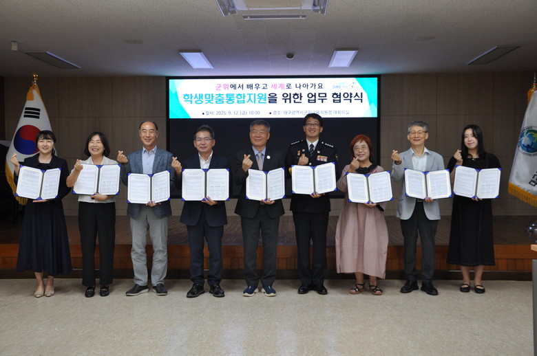 [대구 세계타임즈=한윤석 기자] 대구군위교육지원청(교육장 김두열)은 9월 12일(금) 군위교육지원청 대회의실에서 지역 9개 기관과 ‘학생맞춤통합지원 업무협약’을 체결했다.