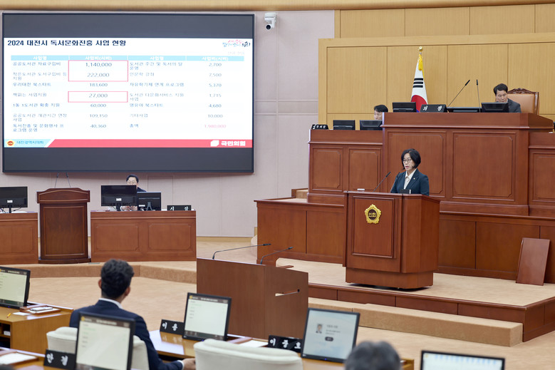 먼저 박주화 의원은 독서 문화 진흥을 위해 적극적인 독서모임 활성화 지원을 제안했다. 현재 대전시에서는 18억 원 규모의 독서문화진흥 사업을 진행하고 있지만 독서모임 관련 사업은 매우 저조한 실정임을 지적하면서, 공공도서관 및 전문단체와 연계해 다양한 독서모임 커뮤니티를 구성하고 성과를 시상하는 등 적극적인 독서모임 지원 사업을 추진할 것을 이장우 시장에게 제안했다.