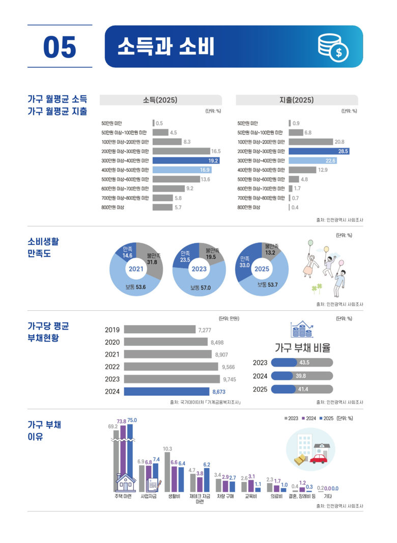 이번 조사는 2025년 8월 4일부터 9월 19일까지 인천시 관내 9,000 가구, 13세 이상 가구원 17,361명을 대상으로 실시됐다. 조사 내용은 인구, 건강, 가구와 가족, 문화와 여가, 소득과 소비, 노동, 주거와 교통, 교육, 안전, 환경, 사회통합 등 11개 분야 172개 항목이며, 행정자료 분석과 함께 인터넷조사 및 면접조사를 병행했다.