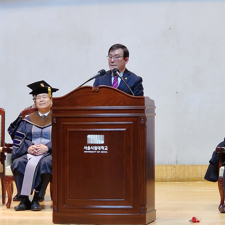 이날 서울시립대학교 대강당에서 열린 학위수여식에는 임춘대(송파3, 국민의힘) 기획경제위원장, 원용걸 서울시립대 총장, 서울시립대 총동문회장, 학부모 등 졸업생을 포함한 약 1,000여 명이 참석한 가운데 진행됐다.