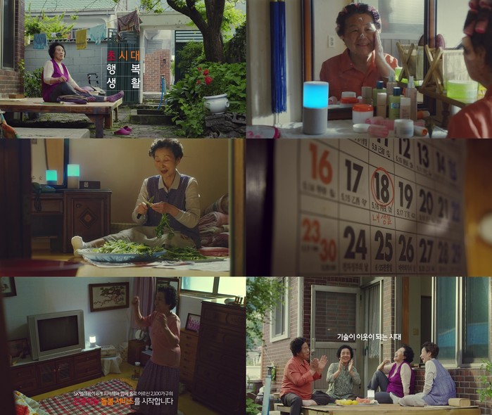 새롭게 공개한 광고 ‘행복 생활’ 편에는 실제로 ‘인공지능 돌봄 서비스’를 제공받고 있는 독거 어르신 네 분이 출연, 음성인식 AI 스피커 ‘누구’와 함께 하는 생활을 소개한다. 실제 집에 있을 때처럼 ‘누구’와 자연스럽게 대화하고, ‘누구’의 다양한 기능을 능숙하게 사용하는 생활 연기가 눈을 사로잡는다.