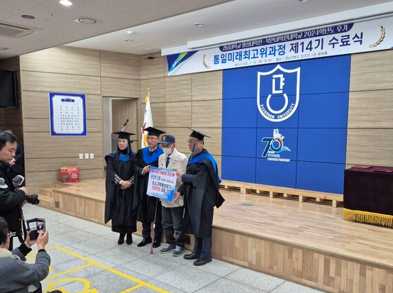 이날 『통일 미래 최고위 과정』제14기 후기 수료식에 남길우 회장 (석좌교수) 행정대학원 윤태영 원장, 이정혜 보훈 방송 편집국장. 보훈처 사무국장, 광포횟집 정선이 대표 등 내빈들과 강 명상 회장 (총학생회) 대학원 동기들이 참석한 가운데 수료식이 거행됐다.