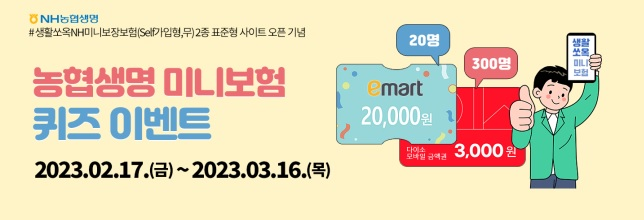 2월17일부터 3월16일까지 한 달간 생활쏘옥미니보장보험 퀴즈 이벤트 실시