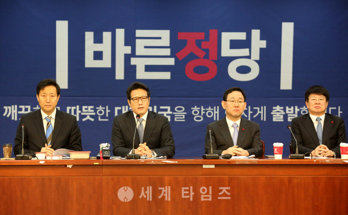 정병국 바른정당 창당준비위원장을 비롯한 의원들이 9일 오전 서울 여의도 국회 의원회관에서 전체회의 및 정책의총를 하고 있다. 사진 왼쪽부터 오세훈 전 의원, 정병국 창당준비위원장, 주호영 원내대표, 이종구 정책위의장. 2017.01.09.