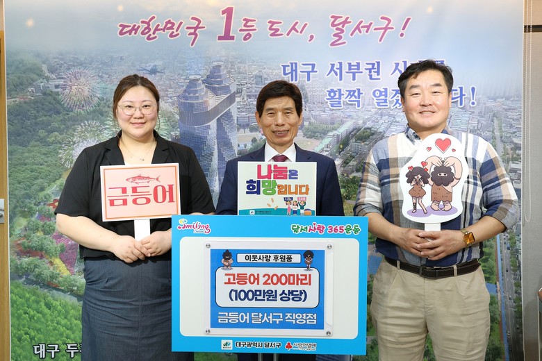 이태훈 달서구청장은 “정성 어린 나눔으로 이웃사랑을 실천해주신 금등어 달서구 직영점에 감사드리며, 기탁받은 후원품은 도움이 필요한 분들께 소중히 전달하겠다”고 밝혔다.