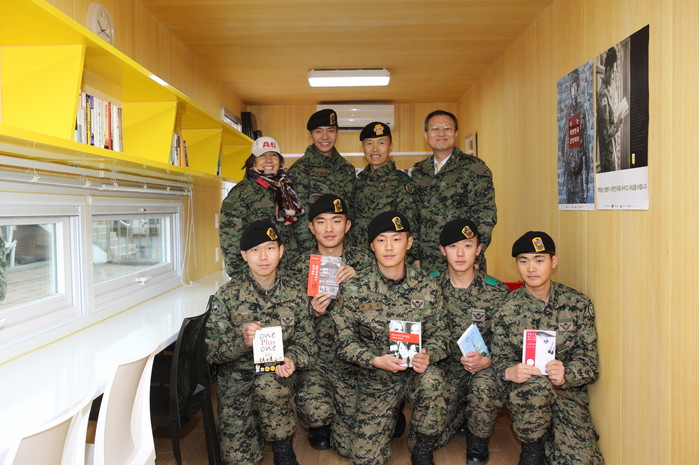 또한 컨테이너형의 병영독서카페에는 600여권의 양서와 냉ㆍ난방 시설 및 편의시설이 완비되어 있어 장병들이 편안하게 책을 읽고 서로 소통하며 여가활동을 보낼 수 있는 장소이다.
