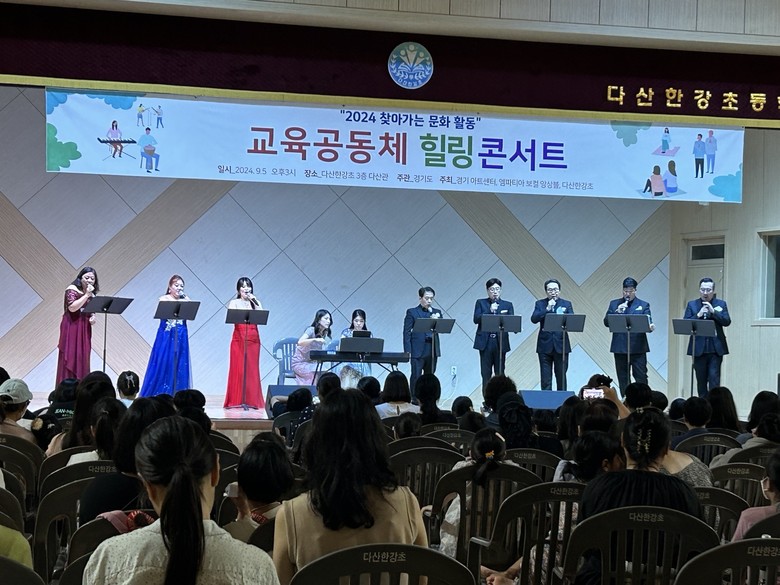 [남양주시 세계타임즈=송민수 기자] 경기도구리남양주교육지원청 다산한강초등학교(교장 이상호)는 문화 예술 체험교육 활성화와 교육공동체가 함께 소통하는 장을 만들기 위하여 경기도가 주관하는 ‘2024 찾아가는 문화 활동 사업’을 신청하여 경기아트센터, 엠파티아 보컬 앙상블과 함께 ‘교육공동체 힐링 콘서트’를 개최하였다. 본 공연은 9월 5일 95가족, 270여 명이 참석한 가운데 진행되었다.