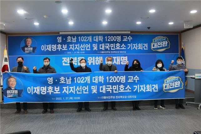 영남과 호남에서 활동하는 교수 및 연구자 1,000여명은 27일 각각 광역 거점에서 2022년 대통령 선거에 출마하는 이재명 후보를 공개 지지하고 지지선언문을 발표했다.