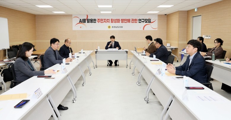 [충남 세계타임즈=이현진 기자] 충남도의회는 3일 천안시 봉명커뮤니티센터에서 ‘AI를 활용한 주민자치 활성화 방안 연구모임’ 제2차 회의를 개최하고 AI 기반 주민참여 확대와 정책 연계 방안에 대한 구체적인 논의를 이어갔다.