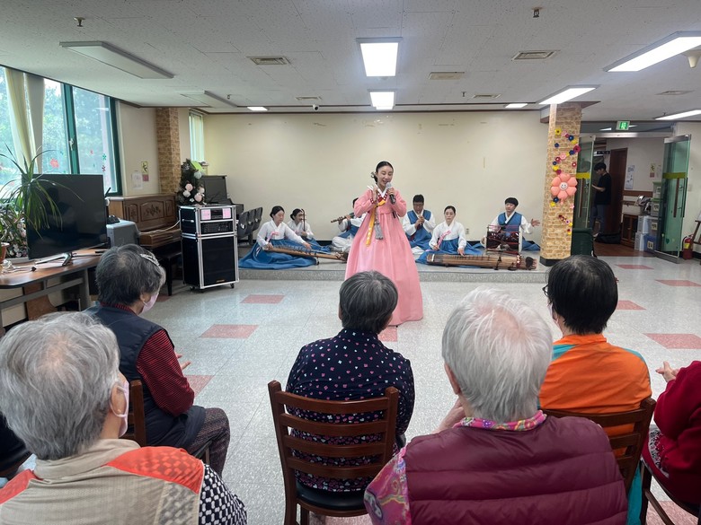 이 외에도 국악 관현악 연주곡 등 어르신들에게 친숙한 우리 소리로 어르신들의 흥을 돋우게 된다.