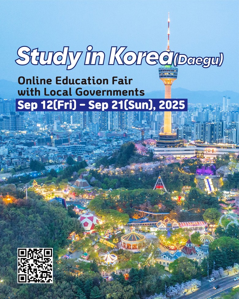 ▸ 학과 소개부터 입학 신청까지! 대학별 부스에서 원스톱 서비스 제공 [대구 세계타임즈=한윤석 기자] 대구광역시는 9월 12일(금)부터 21일(일)까지 10일간, 온라인으로 열리는 ‘2025년 지자체와 함께하는 한국유학박람회’에 지역 10개 대학과 함께 참가해 해외 유학생 유치 활동에 나선다.