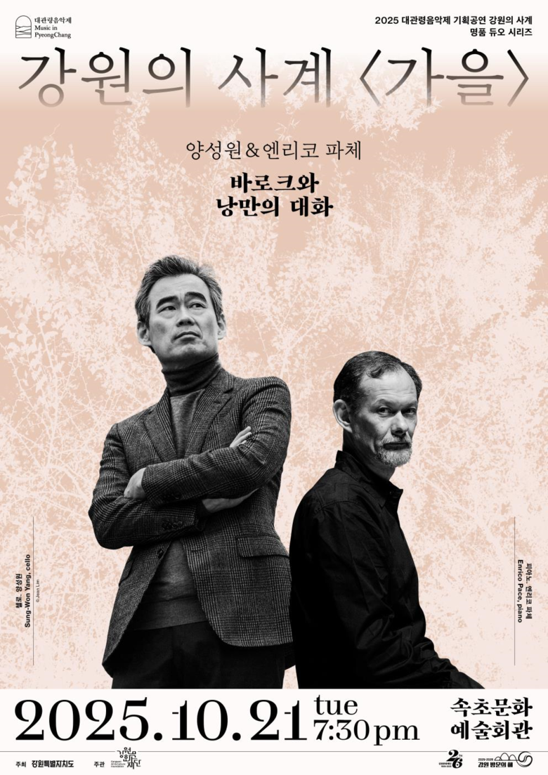 이번 공연은 세계적인 첼리스트 양성원과 피아니스트 엔리코 파체를 초청해 섬세한 호흡, 정교한 해석이 돋보이는 듀오 무대를 선보인다.