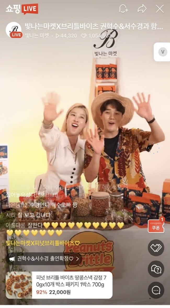 [세계타임즈 백진욱 기자] 스타일리스트 서수경과 개그맨 권혁수가 함께 진행한 네이버 라이브방송에 소개된 피넛브리틀바이츠가 소비자들의 눈길을 끌면서 화제에 올랐다.