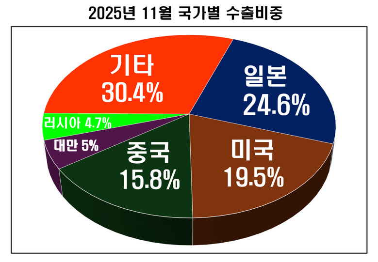 [전남 세계타임즈=우덕현 기자] 전라남도는 2025년 1~11월 농수산식품 수출액이 7억 9천375만 달러로 역대 최대 실적을 달성했다고 밝혔다. 이는 2024년 같은 기간보다 13.0% 증가한 수치고, 전국 평균 증가율(6.5%)의 약 두 배 수준이다.