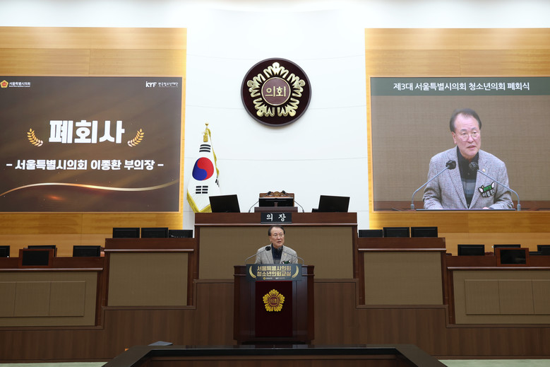 서울특별시의회(의장 최호정)는 제3대 청소년의회가 6월 선거를 통해 80명의 청소년 시의원을 선발하여, 7월부터 5개월간의 실제 시의원들의 의정활동을 체험하였고, 11월 15일(토) 서울시의회 본회의장에서 폐회식을 가졌다고 밝혔다.