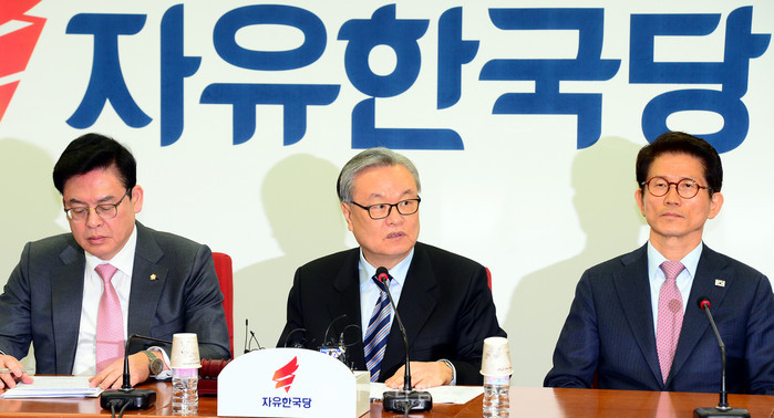 인명진(왼쪽 두번째) 비대위원장이 6일 오전 서울 여의도 자유한국당 당사에서 열린 비상대책위원회의에서 모두발언을 하고 있다. 2017.03.06.