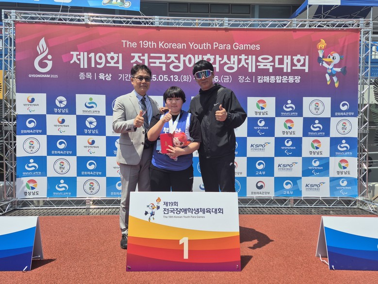 처음 만져보는 포환과 원반이 생소했지만, 3월부터 대회 전까지 주말과 공휴일을 반납해 가며 특수교사의 지도를 받아 기량을 갈고닦은 결과, 이번 대회 원반, 포환던지기 종목에서 모두 금메달을 획득했다.