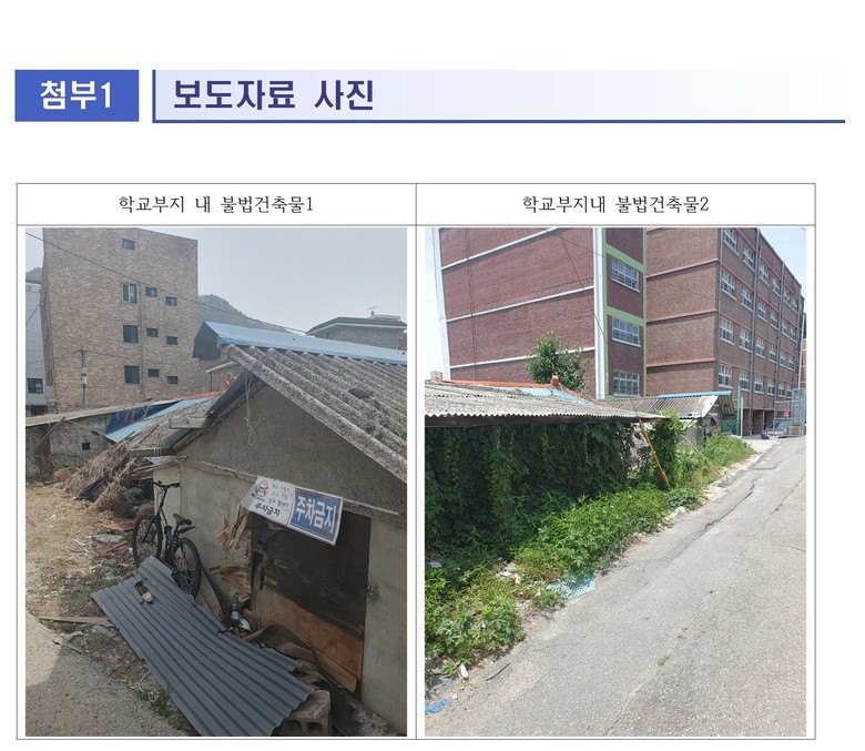 이에 구리남양주교육지원청(교육장 서은경)은 학교 시설 내 무단점유지에 대한 행정대집행을 적극적으로 추진할 예정이고 그 공간에 남양주시청(시장 주광덕)의 지원을 받아 불법건축물 위치에 지역주민 및 교직원을 위한 주차장을 설치하는 등 쾌적한 교육환경 조성을 위한 노력을 기하고 있다.