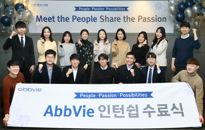 | ▲한국애브비가 지난 1월 7일부터 2월 28일까지 두 달간 진행된 ‘2019 인턴십 프로그램’ 성료 기념 수료식을 마쳤다. |