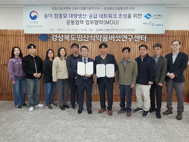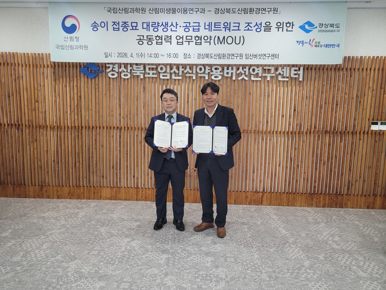 이번 협약을 통해 양 기관은 ▲송이 접종묘 생산 기술 및 기능성 미생물 자원의 정보 공유 ▲대량생산을 위한 기술 교류 ▲산불피해지 복원을 위한 공동 워크숍 및 세미나 개최 등 다양한 분야에서 협력을 강화할 계획이다.