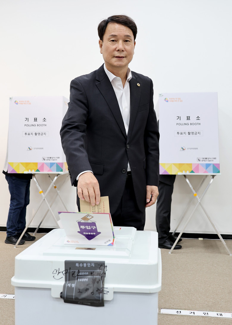 [대전 세계타임즈=이채봉 기자] 대전시의회 이상래 의장은 5일 제22대 국회의원선거 사전투표 첫날인 5일 대전시청 1층 전시실에 마련된 둔산1동 사전투표소를 방문해 투표에 참여했다.