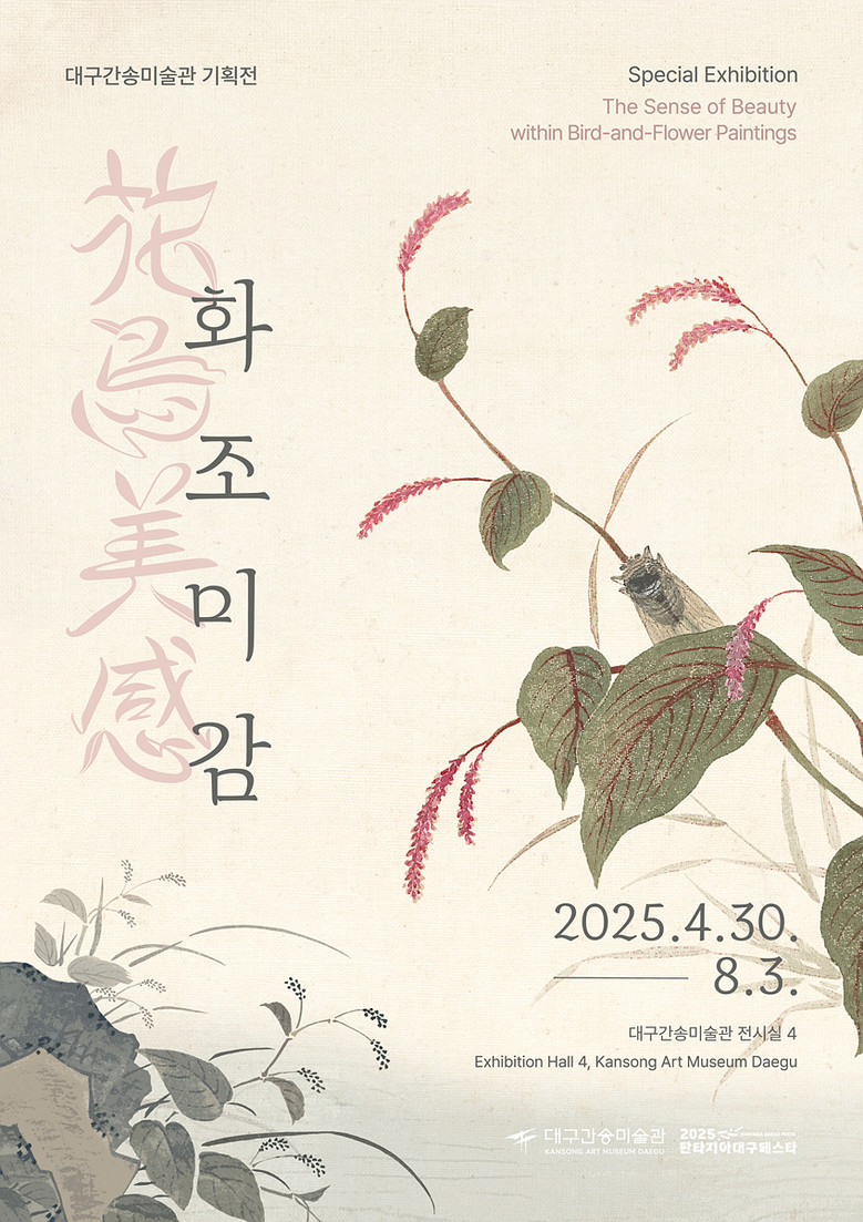 조선시대 화조화의 미감을 현대에 전하는 ‘대구간송미술관 상반기 기획전-화조미감(花鳥美感)’은 4월 30일(수)부터 8월 3일(일)까지 대구간송미술관에서 개최된다. 이번 전시는 꽃과 새를 주제로 한 고미술 작품을 통해 조선시대의 예술 감성과 회화 미학을 느낄 수 있다.
