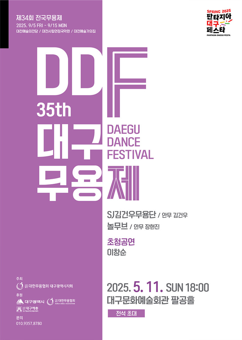 춤으로 물드는 도시, 대구의 역동을 무대 위에 펼치는 ‘대구무용제’는 5월 11일(일) 단 하루 대구문화예술회관 팔공홀에서 개최된다. 지역 안무가들에게 창작의 장을 열어주며, 전국 무용제 출전을 위한 지역 대표팀을 선발한다.
