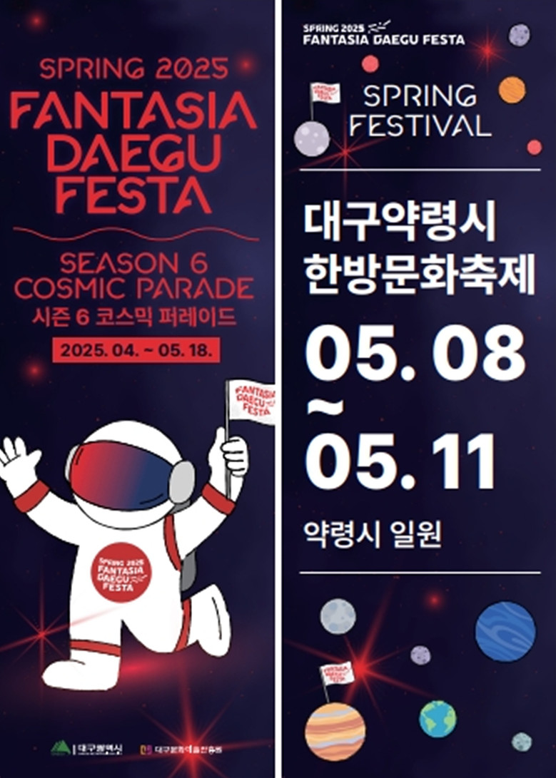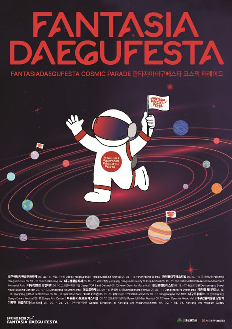 ▸ 5월 8일(목)~17일(토) 10일간 대구 전역에서 총 11개 축제 개최 [대구 세계타임즈=한윤석 기자] 2025 판타지아대구페스타 봄축제가 ‘코스믹 퍼레이드’라는 슬로건으로 5월 8일(목)부터 17일(토)까지 10일간 대구 전역에서 개최된다.