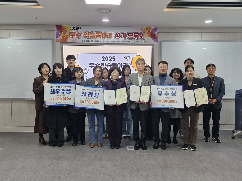 [경북 세계타임즈=한윤석 기자] 경북교육청(교육감 임종식)은 19일 본청 미디어회의실에서 본청 소속 지방공무원을 대상으로 ‘2025년 우수 학습동아리 성과공유회’를 열고, 한 해 동안 운영한 학습동아리의 주요 활동과 성과를 공유했다고 밝혔다.
