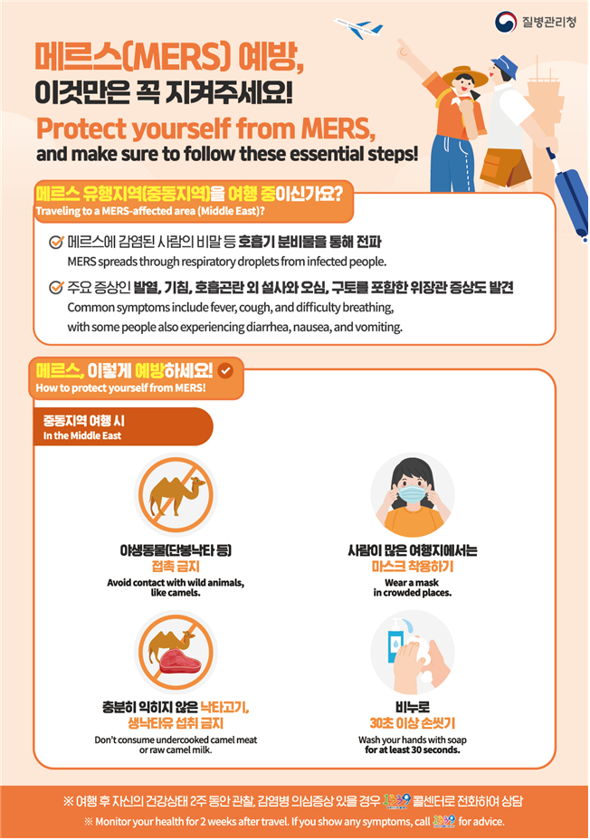 각종 해외감염병에 대한 정보는 ‘해외감염병나우(NOW)’ 누리집(해외감염병NOW.kr)과 ‘여행건강 오피셜’(travelhealth.kr)에서 확인할 수 있다.