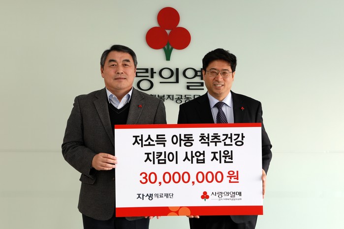 이를 위해 자생의료재단은 지난 11일 경기도사회복지공동모금회에 아동척추건강지킴이 사업을 위한 임직원 기부금 3000만원을 기탁했다. 이날 경기도 수원시 팔달구 소재 경기도사회복지공동모금회 사무실에서 진행된 전달식에는 자생의료재단 신민식 사회공헌위원장과 경기도사회복지공동모금회 강학봉 사무처장 등 양 기관 주요 관계자들이 참석했다. 전달된 기금은 경기도 부천시 내 지역아동센터 10개소에 전문 체육강사 파견과 운동용품 지원 등에 쓰일 예정이다.