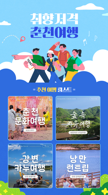 △C(Culture): ‘춘천 문화여행’은 김유정문학촌, 마임축제, 야시장, 공예 워크숍 등 춘천의 문화예술 자원을 한데 모아 체험할 수 있는 복합 문화여행 상품이다.