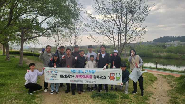 [강원도 세계타임즈=김민석 기자] 강원특별자치도 미래산업국(국장 심원섭) 직원 20여 명은, 4월 19일(토) 강릉 남대천 일원에서 환경정화 봉사활동을 실시했다.
