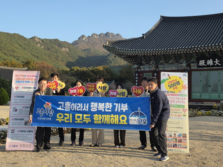 군 행정과 관계자는 “능가사를 찾은 많은 분이 고흥의 아름다운 자연과 함께 나눔의 가치를 경험하길 바라는 마음으로 이번 캠페인을 준비했다”며 “기부금은 청년·교육·복지 등 군민 삶의 질 향상을 위한 분야에 쓰이는 만큼 지속적인 관심을 부탁드린다”고 말했다.