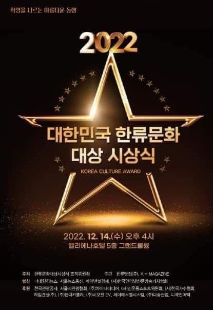 강남구 엘리에나 ‘2022 대한민국 한류문화대상 시상식’은 방송.연예는 물론 정치, 경제, 사회 부문에서 한해 동안 한류 문화 발전에 두드러진 역할을 한 인물에게 주어지는 상이다.