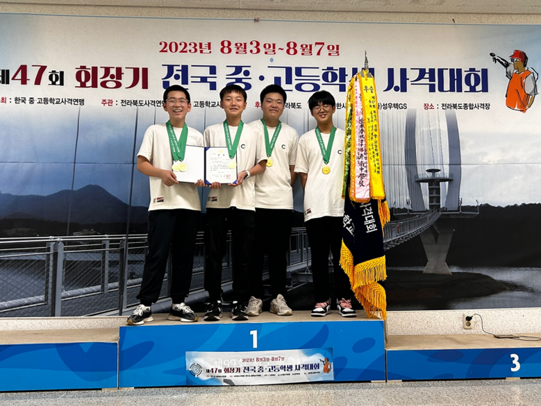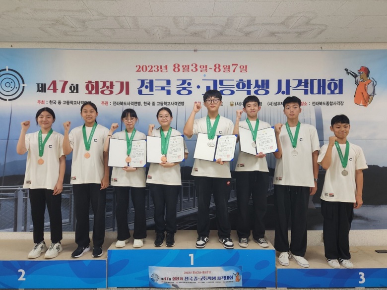 10m공기권총 남중부 단체전에 출전한 조은준(3학년), 김윤환(2학년), 김유준(2학년), 이준혁(2학년) 학생은 1,674점을 얻어 1,664점의 복대중에 10점차로 승리하며 1위를 차지했다. 이어 10m공기권총 개인전에 출전한 이준혁 학생은 제주중앙중 김재헌 학생을 2.5점차의 여유있는 점수로 따돌리며 이번 대회 2관왕에 올랐다.